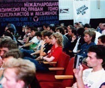 I first saw Olga Krauze standing in front of the Leningrad Cultural House of Vocational Education Workers on a warm sunny day in July of 1991. She had a modest, unassuming look about her, brown medium length hair, about 5’4” and dressed in a light colored shirt and dark pants. I was there as a part of a delegation of 65 North Americans, just arrived and ready to have the first International Gay and Lesbian Symposium in Leningrad, followed by a queer film festival and conference in Moscow. We were armed with cameras and English books and magazines and other gay paraphernalia. No, we were not missionaries. Lesbians and gays, bisexuals and transgender people already existed in Russia. After decades of hiding, this was the first significant encounter Olga and other Russian queers would have with Western queers who were open about their sexuality. Apparently, the “Dvorets” or Palace of Culture had no idea who they had rented their space to, as Olga later found out. According to them, the event was scandalous.