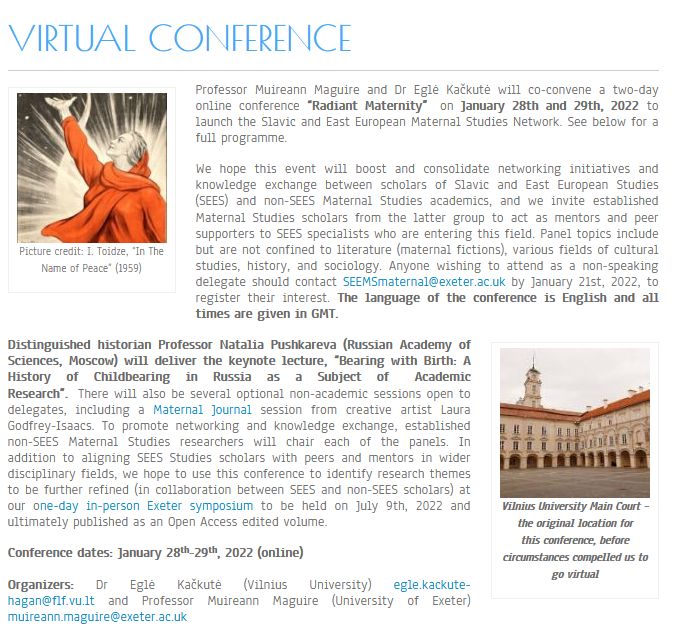 The full listing of events is available on the conference’s website. To register, please email SEEMSmaternal @ exeter.ac.uk by January 21st, 2022. The sessions will be conducted in English.