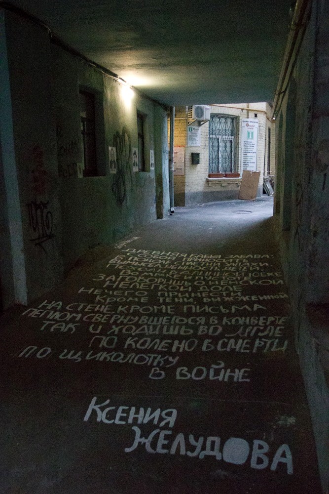 Ksenia Zheludova: That’s a good question. When you live within the current historical context – that is, when you don’t live in a bunker – you naturally react to what’s going on in the world. I don’t like poetry that’s too “concrete,” poetry that mentions individual names, toponyms, or furnishes descriptions of specific events. Texts like that make me uncomfortable. I always try to set my poems in a more universal context and to cleanse them of any ties to a specific time and place. But sometimes it’s the text itself that becomes attached to some event or other, as if drawn by a magnet. The poem you mention actually became part of the events in Ukraine because, at some point, somebody wrote it on the asphalt in Kyiv.